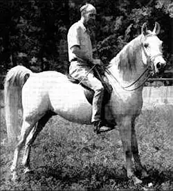 The most notable of Babson's imports was the stallion *Fadl, who went on to sire the champion Fa-Serr, who is a major genetic source of the color black in modern Arabians. Fadl's most famous son, however, was the half-Egyptian, half-Polish stallion Fadheilan, sire of the legendary champion of the 1960s, Fadjur, grandsire of Khemosabi, a national champion in both halter and performance, who was one of the most significant Arabian sires of the 1970s and 1980s.[8] Today, *Fadl is found in at all "straight Babson" (or "Babson Egyptian") pedigrees.[7] The best-known horses of his Polish imports were the stallion *Sulejman, who sired many champions, and the mare *Azja IV, who became the dam of the major American-bred sire Azraff.[7]