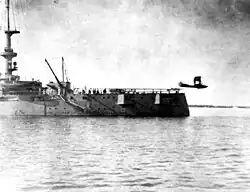 Following the Tampico Affair on 9 April 1914, the United States sent a squadron of warships to Veracruz, Mexico. After first sending three planes to Veracruz aboard the light cruiser USS Birmingham, Lieutenant Commander Mustin took temporary command of Mississippi as her acting captain and led a second aviation detachment, along with 500 United States Marines, aboard her to the campaign. They arrived at Veracruz on the evening of 24 April 1914. The United States occupation of Veracruz marked both the first operational use of naval aircraft and the first time that any U.S. aviator of any service was the target of ground fire.[1] Mississippi began her voyage back to Pensacola on 12 June 1914 to make repairs to the aircraft which had seen continued use without means of maintenance. In July 1914, Mustin took Mississippi to Norfolk, Virginia, to be sold to Greece.