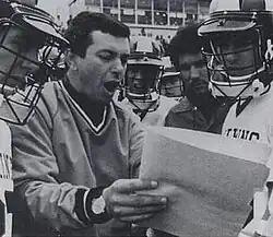 ![]() Ciccarone (left) and assistant Don Zimmerman (right) instruct Johns Hopkins players | |