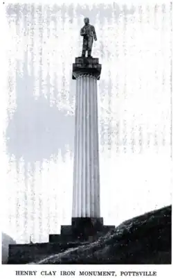 The Henry Clay Monument is a public monument in Pottsville, Pennsylvania, United States. Work on the monument, which consists of a state of Henry Clay atop a Doric column, began in 1852, shortly after his death, and ended in 1855.