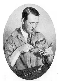 ![]() Field examining an ancient necklace. | |