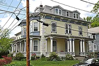The Henry Gane House is a historic house at 121 Adena Road in Newton, Massachusetts. Built c. 1860s, the two-plus story wood-frame house is distinguished as one of Newton's finest Second Empire houses. Its eaves are lined with dentil moulding and paired brackets, its windows have elaborate hoods, and its porch, which wraps around two sides of the house, has elaborate woodwork detail. The house was built for Henry Gane, a successful Boston merchant, and originally stood on 16 acres (6.5 ha) of manicured grounds at the corner of Waltham and Derby Streets. The land was subdivided in 1897, after which adjacent Northgate Park was developed; the house was moved to its present location after World War I.[2]