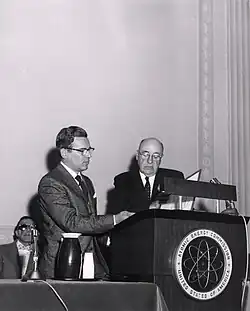 Hurwitz (left) receiving the E.O. Lawrence Award in 1961