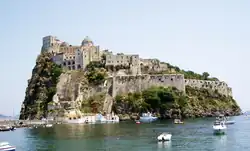 - Aldoino Ventimiglia (d. 1289), who co-reigned with his father as Count of Ischia and Geraci; he married Giacoma Filangeri,[4] and died at sea in 1289 returning to Sicily from Gaeta.[5]