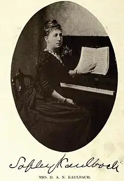 He was married twice. He married Eunice Sophie Harris in 1858.[3] Hon. Henry Adolphus Newman Kaulbach, Q.C., then a member of the Senate married in September 1880 Sophie Anne Ryland, daughter of George H. Ryland, Registrar of Montreal, and his wife, Mary Pitt, daughter of Lieut.-Col. Ralph Gore, of Barrowmount, County Kilkenny, and of H.M.'s 33rd Regiment of Foot. She was born in Quebec, and educated by private tuition. She was an amateur singer and pianist. She was instructed for the piano, by Prof. D'Albert, and in singing by Prof. Arthurson and Dr. Shilling. She was a member of the Montreal Fox Hounds. The couple lived at Mizpah Cottage, Lunenburg, Nova Scotia.[4]