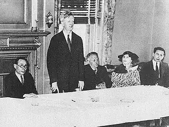 ![]() Moskowitz (seated, center) at a meeting of the American ORT, 1934 | |