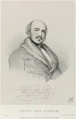 Henry Phillips, in character as Count der Tiemar in Amilie, or, The Love Test by William Michael Rooke, 1839 lithograph