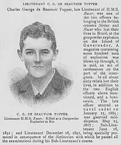 Henry de Beauvoir Tupper joined the Royal Navy after leaving Framlingham College, and was on 1 July 1902 posted as a midshipman to the pre-dreadnought battleship HMS Revenge, serving in home waters.[1]