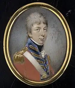 The regiment, which had been chiefly recruited around Worcester, was disbanded at the peace a few months later, and the baby was put on half-pay; but brought on full pay again as an ensign, at the age of five, in the 41st Foot, of which Joyner Ellis had been appointed major on its reorganisation in 1787.[2]