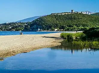 ![]() Probable location of Herakleion at Fort Platamon. It controlled the mouth of the Vale of Tempe, the one easiest way over Mount Olympus from Macedon to Thessaly. It was, however, outflanked by more precipitous ways. | |