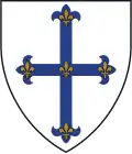 Argent, on a cross fleury sable five fleur-de-lis or, and a chief of Harvard | Possibly assumed arms of Walcott family, for Henry P. Walcott, Overseer, Fellow, and Acting President, important figure in public health in Massachusetts | ![]() |