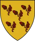 Gules, seven mascles conjoined, three, three, and one, or.[14] | Probably assumed arms, but found on a silver cup belonging to Edmund Quincy, a second generation settler. |