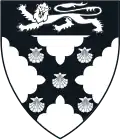 Or, a lion rampant vert armed and langued within a bordure gules.[7] | A differenced version of the arms of Governor Thomas Dudley. |
