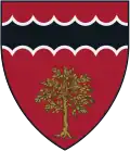 Or, five sprigs of oak gules in saltire, each with a single leaf and an acorn.[3] | The arms reference the Adams family of Quincy, Massachusetts, who had used an oak leaf logo in several family papers. |
