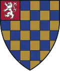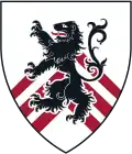 Gules, a lion rampant argent, and, sustained by a fillet compony or and azure, a chief of Harvard | Assumed arms of the Warren family, distinguished medical family of Boston, including Joseph Warren, John Warren, John Collins Warren, with chief chequy of three rows, or and azure, reduced to a fillet | ![]() |