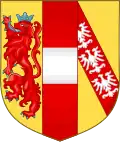| Arms of Austria impaled with Burgundy (ancient). The personal arms of most Austrian princes from 1477 until 1740 (see here) | Personal Arms of Joseph II and Marie Antoinette showing Austria (Habsburg arms) impaled with Lorraine (Lorraine arms). | Tripartite personal arms of Leopold II and Francis II/I showing Austria (Habsburg arms), Lorraine (Lorraine arms) and Tuscany (Medici arms), and used by the House of Austria-Tuscany (see Archduke Sigismund, Grand Duke of Tuscany). | Tripartite personal arms of the "Habsburg" ruling house after 1805 showing the return to prominence of the old Habsburg arms. This was illustrate that the old dynasty continued in all its rights. It is used today by most archdukes/archduchesses. |