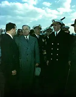 Although he retired from the Navy in early 1946, Leary remained active and served as president of the New York Maritime Academy from 1946 to 1951 during the period of the academy's transformation into the New York State Maritime College.[3][4]