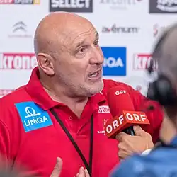 He is in relationship with the Thüringer HC player Petra Popluhárová. They have two children together.[6] He also has two daughters, Nadia (born 2001) and Vanessa (born 2007) from a previous relationship.[1] His brother, Helfried, is also a handball expert, serving as the assistant coach of Thüringer HC.[7]