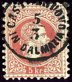 Austrian KK stamp issued in 1867 cancelled Castelnuovo in Dalmazia