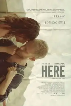 Here garnered mostly positive reviews and holds a 71% positive rating on Rotten Tomatoes based on 13 reviews.[3] The film won the Special Jury Prize at the 2011 Berlin Film Festival. Stephen Holden of The New York Times said of the film, "Here, filmed by Lol Crowley, is still a stunner. Flawed as it is, I admire it immensely."[4]