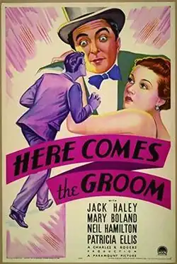 Here Comes the Groom is a 1934 American Pre-Code comedy film directed by Edward Sedgwick and written by Richard Flournoy and Casey Robinson. The film stars Jack Haley, Mary Boland, Neil Hamilton, Patricia Ellis, Isabel Jewell, Lawrence Gray and Sidney Toler. The film was released on June 22, 1934, by Paramount Pictures.[1][2]