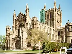 Hereford Cathedral, formally the Cathedral of Saint Mary the Virgin and Saint Ethelbert the King in Hereford,[1] is a Church of England cathedral in Hereford, England. It is the seat of the bishop of Hereford and the principal church of the diocese of Hereford. The cathedral is a grade I listed building.[2]