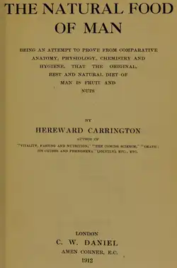 - ^ Carrington, Hereward (16 September 1908). "Vitality, fasting and nutrition; a physiological study of the curative power of fasting, together with a new theory of the relation of food to human vitality, by Hereward Carrington... with an introduction by A. Rabagliati". New York, Rebman company. Retrieved 16 September 2019 – via Internet Archive.