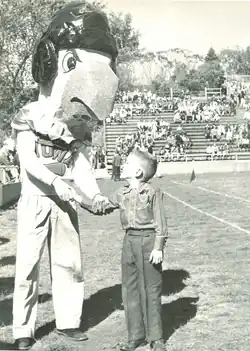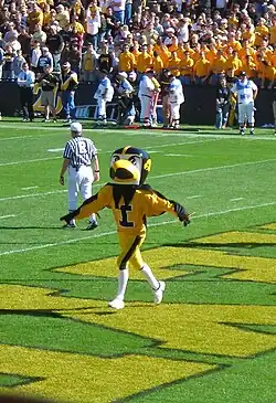 ![]() Herky the Hawk performing at the Beat State Pep Rally in 2014. | |