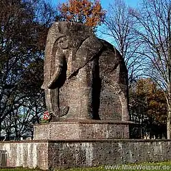 Across from the school there is a 7 metre high brick-elephant designed by the sculptor Fritz Behn, inaugurated on 6 July 1932, which became the emblem of the school. Just like the school the monument changed from a pro-colonial monument to an anti-colonial monument in a ceremonious renaming on 18 May 1990.