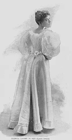 Libbey Glass purchased the fiberglass patent among others from Hammesfahr with the intention of displaying the fabric in a spectacular manner at the 1893 World's Columbian Exposition in Chicago, Illinois. At first, the company wove lamp shades from the glass fabric. Then it caught the eye of actress Georgia Cayvan who requested a dress be made from it. Hammesfahr designed a dress and the Libby Glass company showed it off at the Columbian Exposition.[5] The dress was a sensation. Thomas Edison’s electric light bulb also debuted at the fair, as well as the Ferris wheel; however contemporary accounts indicate it was the glass dress that attracted the attention of women across America.https://www.newspapers.com/clip/87764690/marriage-of-hammesfahr-kse/