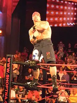 In March 2006, Hernandez signed a new contract with Total Nonstop Action Wrestling. He returned on the March 31, 2006, episode of TNA Xplosion as the newest member of the heel stable The Latin American Xchange (LAX), teaming with Homicide and being managed by Konnan. On the August 24, 2006, episode of TNA Impact!, Hernandez and Homicide defeated A.J. Styles and Christopher Daniels in a Border Brawl for the NWA World Tag Team Championship.[1] Styles and Daniels regained the title from Hernandez and Homicide in an Ultimate X match on September 24, 2006, at No Surrender, but Hernandez and Homicide won the title back on October 22, 2006, at Bound for Glory inside the Six Sides of Steel.[8][9] After winning the title back, they engaged in a feud with America's Most Wanted, defeating them in a match at Genesis and then a flag match at Turning Point.[10][11] Their next rivalry involved Team 3D (Brother Devon and Brother Ray), and, after winning three consecutive matches at Final Resolution (by disqualification), Against All Odds (in a Little Italy Street fight) and Destination X (in a Ghetto Brawl), lost the NWA tag-team championships to Team 3D at Lockdown in an Electrified Cage match, when Homicide was pinned.[12][13][14] When Konnan left TNA in the summer of 2007, both Hernandez and Homicide turned face and at Bound for Glory defeated Senshi and Elix Skipper of Triple X in an Ultimate X match to get back in the tag team title picture.[1] They would receive their shot at the TNA World Tag Team Championship on the November 1 episode of Impact!, but were defeated by the defending champions A.J. Styles and Tomko.[1]