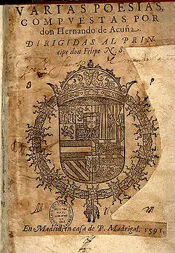 Hernando de Acuña (c. 1520 – 22 June 1580), a native of Valladolid, was a Spanish poet and translator of the Spanish Golden Age. He was admired by Emperor Charles V for both his military and literary talents.