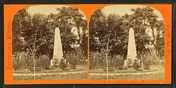 To the right on the obelisk from the plaque, in raised block letters, is "HERNDON.". On the opposite side of the obelisk, also in raised letters, is "September 12, 1857.".[2]