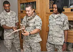 | A U.S. Air Force Airman handles a snake to overcome herpetophobia. | |