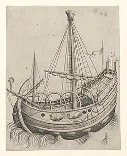 The buis was first adapted for use as a fishing vessel in the Netherlands after the invention of gibbing made it possible to preserve herring at sea.[1] This made longer voyages feasible and hence enabled Dutch fishermen to follow the herring shoals far from the coasts. The first herring buss was probably built in Hoorn around 1415. The last one was built in Vlaardingen in 1841.