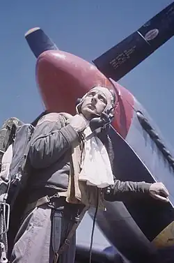 ![]() Col. Green with his P-51 Mustang, c. 1944 | |