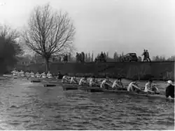 Hertford has a strong rowing history,[1] and this is reflected by the active role that the boat club society plays in the running of the club. Open to anyone with an interest or connection with Hertford rowing, the society is a growing organisation.[12] The highlight of the year is the AGM. This is followed by the annual Society boat race, pitting past rowers against the current 1st VIII's, and then a formal dinner in Hall. Society members also receive the "Blades" magazine.[13] This is published several times a year and keeps society members up to date with the recent fortunes of the club.