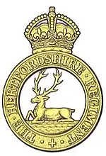 The Hertfordshire Regiment was a line infantry regiment of the Territorial Army, part of the British Army. Originating in units of Rifle Volunteers formed in 1859, the regiment served in the Second Anglo-Boer War and the First and Second World Wars before losing its separate identity in 1961.[3] Its lineage is continued today by the Royal Anglian Regiment.[4]