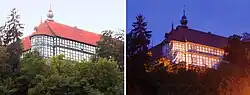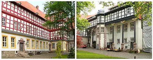 Herzberg Castle (German: Schloss Herzberg) is a German schloss in Herzberg am Harz in the district of Göttingen in the state of Lower Saxony. The present-day, quadrangular building has its origins in the 11th century as a medieval castle. After a fire in 1510 it was rebuilt as a schloss and is one of the few in Lower Saxony that was constructed as a timber-framed building. Because it belonged to the House of Welf for 700 years it is also known as the Welf Castle of Herzberg (Welfenschloss Herzberg).