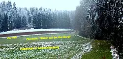 In old maps from 1820 the hill ridge of Harzburg is mentioned. But the new cadastral map refers to it as Herzberg, Herzburg and Erzburg. Several springs rise on its slopes, so that shafts on the hilltop do not have to be driven too deeply to create wells.
