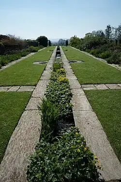 For the central garden element, the partially circular intertwined water channels, Gertrud Jekyll drew inspiration from the intricate patterns of traditional needlework. In addition, distinct Italianate and Moorish-Islamic influences are evident.[11][12]