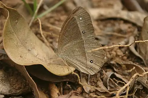 - ^ Kodandaramaiah, U., D. C. Lees, C. J. Müller, E. Torres, K. P. Karanth and N. Wahlberg. 2010. "Phylogenetics and biogeography of a spectacular Old World radiation of butterflies: the subtribe Mycalesina (Lepidoptera: Nymphalidae: Satyrini)". BMC Evolutionary Biology, [10:172 (PDF)