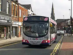Public transport in Heywood is co-ordinated by Transport for Greater Manchester. Bus services include the 471 to Bolton, Bury, and Rochdale and the 163 to Bury, Darn Hill, Middleton and Manchester, as well as other local services, mainly operated by First Greater Manchester and Rosso.[22] Major A roads link Heywood with other settlements. The M62 motorway passes to the south and can be accessed at Junction 19.