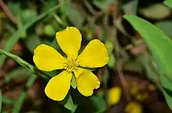 Hibbertia nymphaea is a species of flowering plant in the family Dilleniaceae and is endemic to the south-west of Western Australia. It is a prostrate or straggling shrub that typically grows to a height of 40 cm (16 in) and flowers between August and October producing yellow flowers.[2] It was first formally described in 1904 by Ludwig Diels in Botanische Jahrbücher für Systematik, Pflanzengeschichte und Pflanzengeographie.[3] The specific epithet (nymphaea) is a reference to nymphs who live in fountains and rivers.[4]