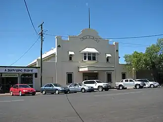 The Hibernian Hall in Roma is a large, timber-framed hall-cum-picture theatre erected in 1932 for the Roma branch of the Hibernian Australasian Catholic Benefit Society. It was designed by Perth and Brisbane architects Cavanagh & Cavanagh.[1]