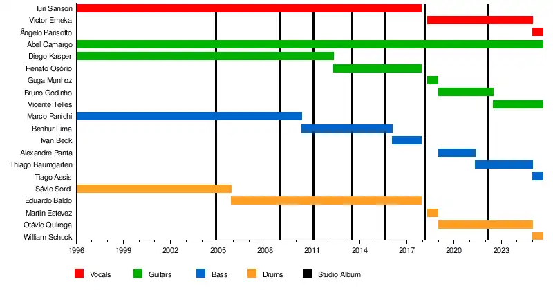 HIBRIA toured across Europe in 1999, in the "Against the Faceless" demo tour, playing 29 concerts through Belgium, Germany, Netherlands, Czech Republic, and Poland.[1] The band was on the roster to perform at ProgPower USA XVI in September 2015, which would have been their first time performing in the United States. However, they were not allowed into the country and did not get to perform. In December 2017, it was announced that Iuri Sanson, Eduardo Baldo, Renato Osorio, and Ivan Beck would be leaving the band. One more release titled Moving Ground, featuring this lineup, was released in February 2018 in Japan.