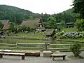 Hida Folk Village, Hida no Sato (飛騨民俗村, 飛騨の里, Hida Minzoku Mura, Hida no Sato) is an open-air museum of close to 30 old farmhouses illustrating the traditional architectural styles of the mountainous regions of Japan. Of particular interest are the thatched and shingled roofs, such as the gasshō-zukuri-styled buildings. Many of the buildings were brought from their original sites to preserve them. The village is picturesquely situated on a hillside overlooking the Takayama Valley and surrounding a large pond. It is in the city of Takayama, Gifu Prefecture, Japan, about 2.5 km (1.6 mi) southwest of the train station.