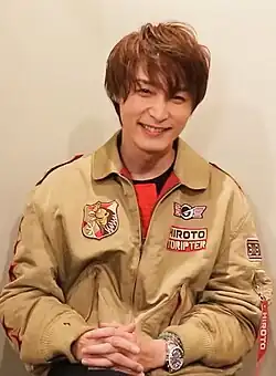 Hidenori Tokuyama (徳山 秀典, Tokuyama Hidenori; born January 30, 1982) is a Japanese actor and singer. A fan of tokusatsu, Tokuyama has had a role in several series, most notably Sou Yaguruma/Kamen Rider TheBee/Kamen Rider KickHopper in Kamen Rider Kabuto and Hiroto Sutō/Go-on Gold in Engine Sentai Go-onger.