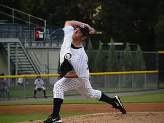 With an overhand delivery, Nomo threw a fastball topping out at 95 mph and a forkball as his primary pitches.[19]