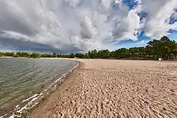 Hietaniemi beach (Finnish: Hietaniemen uimaranta or Hietaranta, Swedish: Sandudds badstrand or Sandstrand; colloquially Hietsu) is a popular sand beach in central Helsinki, Finland. It is located in the Töölö district, next to the Hietaniemi Cemetery and is the most popular beach in central Helsinki.